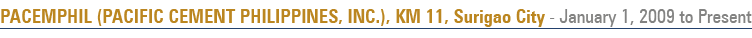 This 5 year contract requires FRASEC VENTURES CORPORATION to provide the manpower, technical expertise and equipment compliment for the drilling, blasting, Quarrying/ Mining of Limestone, Shale, and Silica at a total monthly volume of 25,000 tons. FRASEC Ventures Corporation is also tasked to undertake mine road maintenance, waste dump and silt pond maintenance and Mine Planning and Design in coordination with PACEMCO technical staff on subsequent production operations.
